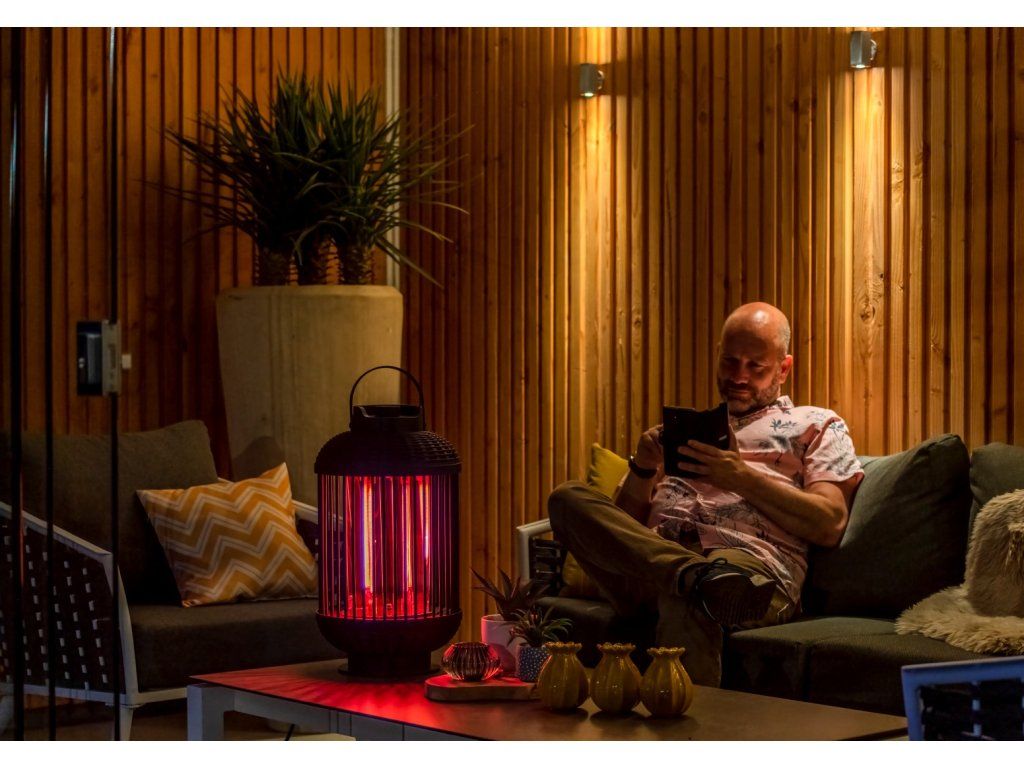 Ohrievač je vybavený technológiou Ultra Low Glare, ktorá znižuje svietivosť až o 80 % (len 100 luxov), čím umožňuje nerušený relax pri nízkom svetelnom efekte. Strednovlnové infračervené žiarenie ohrieva telo zvnútra, a preto je jeho účinok menej ovplyvnený vetrom – ideálne na otvorené aj čiastočne kryté priestory.
