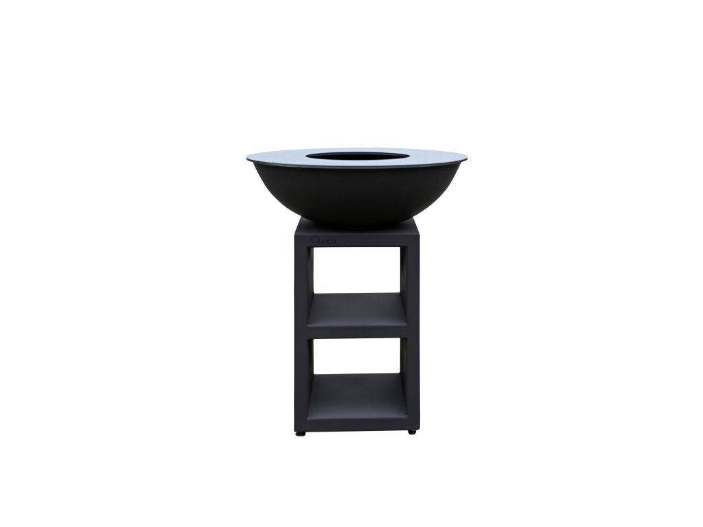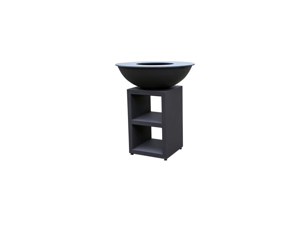 Praktický podstavec je rozdelený na dve časti, pričom slúži ako úložný priestor na drevo a kuchynské náčinie. Vďaka svojej výške (97 cm) je varenie pohodlné a ergonomické. Navyše, ohnisková misa poskytuje dostatok priestoru na veľký oheň, čo vytvára nielen kulinársky zážitok, ale aj útulnú atmosféru.