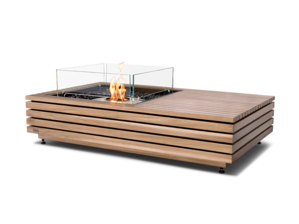 Vďaka priestrannej odkladacej ploche je ideálne na pohostenie hostí, pričom plameň ostáva stredobodom pozornosti. Výškovo nastaviteľné nožičky zabezpečia stabilitu na každom povrchu a odolné materiály garantujú dlhú životnosť aj pri vonkajšom použití. Vyberať môžete z prírodného teaku alebo elegantných betónových odtieňov natural, graphite a bone.