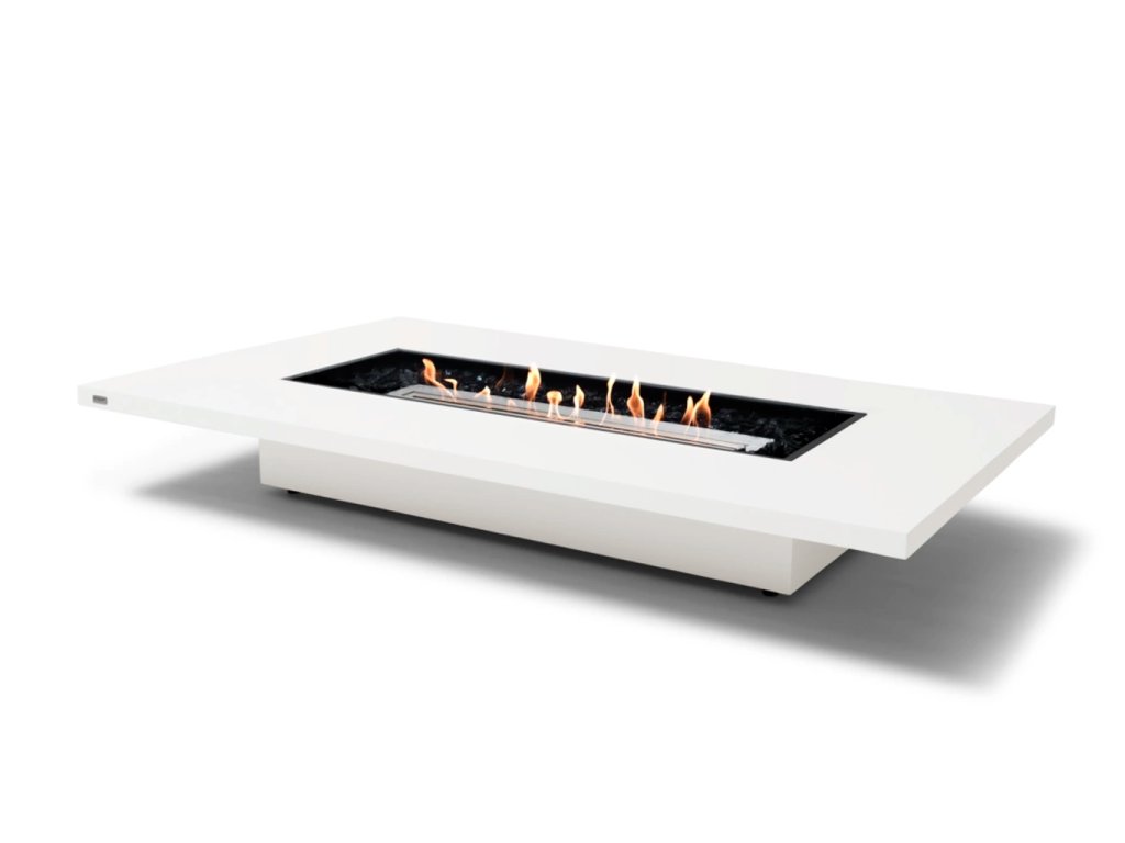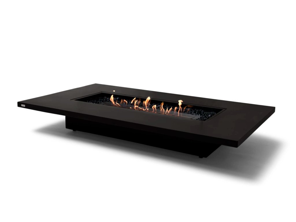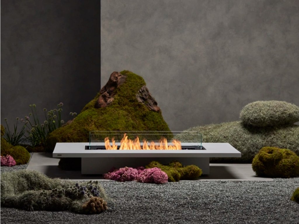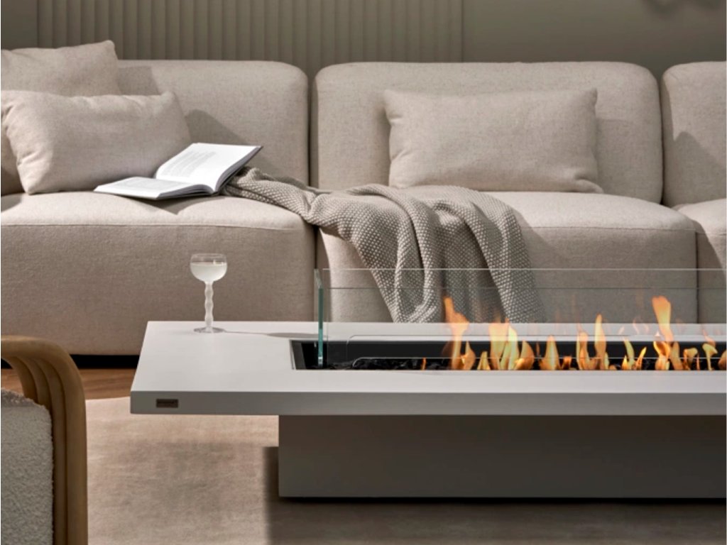 EcoSmart lineárny ohniskový stôl predstavuje spojenie tradičnej útulnosti a moderného dizajnu. Je ideálny ako centrálny prvok pre veľké interiérové aj exteriérové lounge priestory, kde kombinuje atmosféru otvoreného ohňa s praktickým využitím ako konferenčný stôl. Jeho nízka konštrukcia so zapustenou základňou a štíhlym vrchným panelom vytvára vizuálny efekt „plávajúceho“ stolíka.