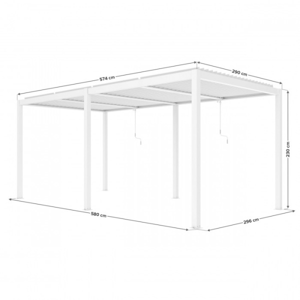 Hliníková pergola Luxe biela predstavuje moderné a vysoko odolné riešenie pre každú terasu či záhradu. Vďaka kvalitnej hliníkovej konštrukcii s ochranou proti korózii je ideálna na celoročné vonkajšie používanie. Pergola ponúka manuálne ovládanie strechy, ktoré umožňuje regulovať priepustnosť svetla a tieňa podľa aktuálnych potrieb. Biela farba a minimalistický dizajn dodávajú priestoru moderný vzhľad, ktorý sa hodí k akémukoľvek exteriéru.