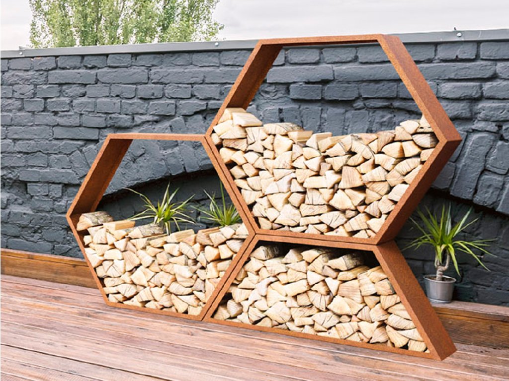 Lichobežníkový stojan na drevo z cortenovej ocele LENA SKL TRAPEZ