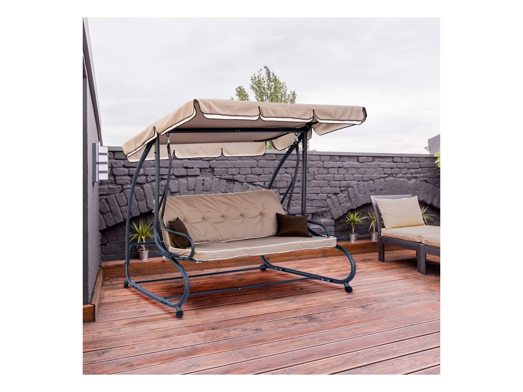Sedadlo a operadlo sú vyrobené z odolnej látky Oxford 600x300D, známej svojou pevnosťou, odolnosťou voči preťaženiu a výbornou životnosťou pri vonkajšom používaní. Pevná oceľová konštrukcia zabezpečuje stabilitu a dlhodobú trvácnosť, čo umožňuje využívať hojdačku počas mnohých sezón.