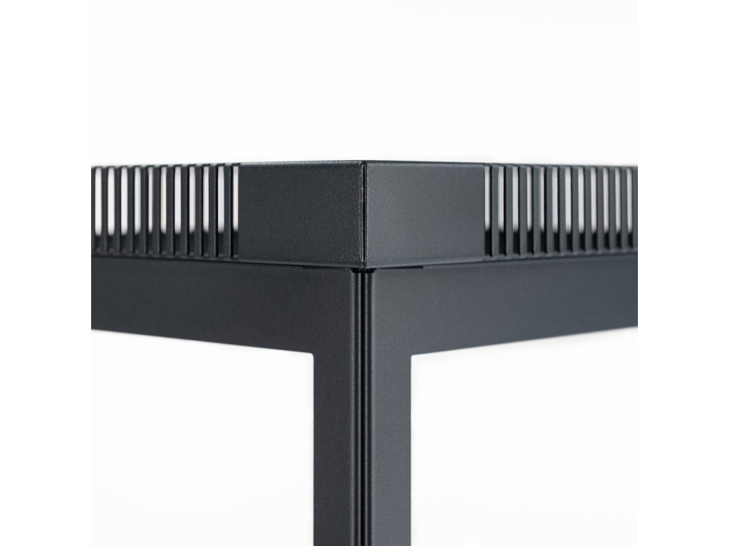 Ohrievač je vyrobený z kvalitnej galvanizovanej ocele s práškovou povrchovou úpravou, doplnený o tvrdené bezpečnostné sklo, čierne lávové kamene a otočné kolieska pre jednoduchú manipuláciu. Vďaka piezoelektrickému zapaľovaniu je obsluha mimoriadne jednoduchá a plameň možno plynulo regulovať.