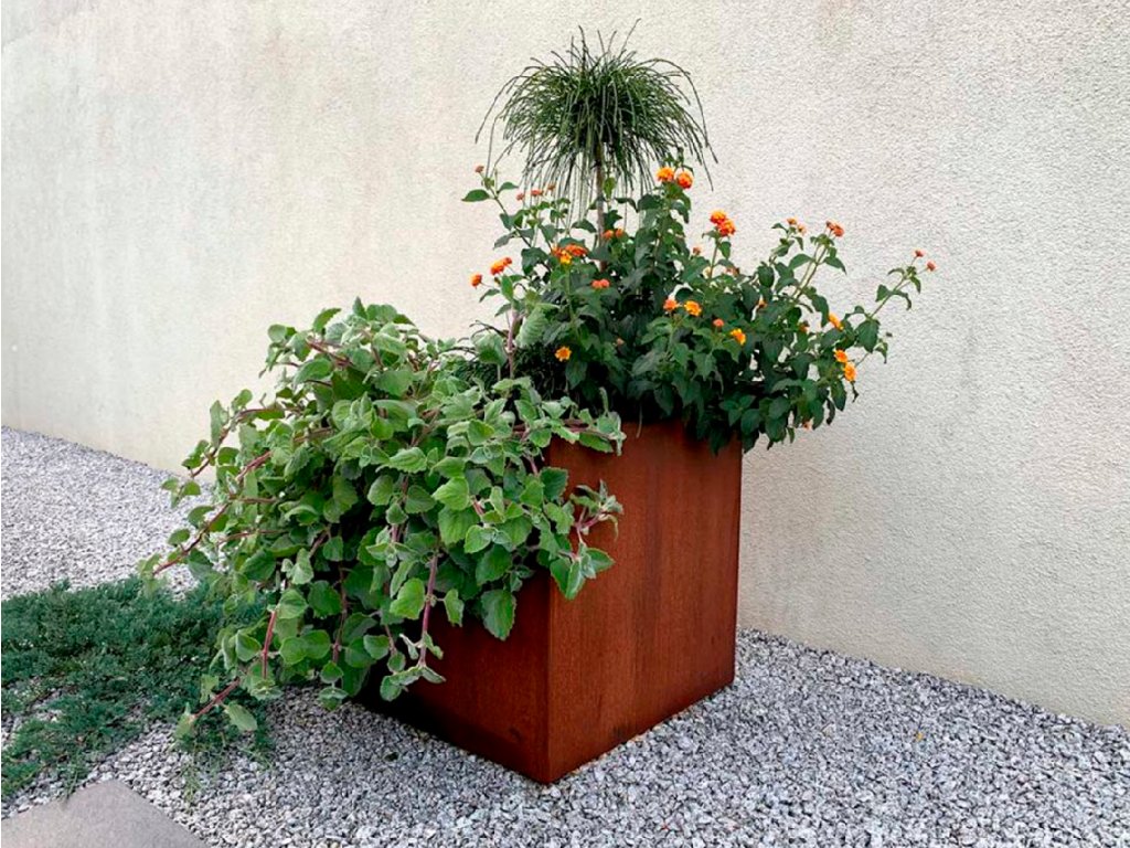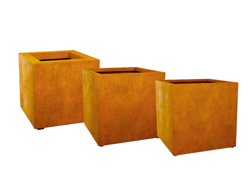 Štvorcový kockový kvetináč z cortenovej ocele CUBO