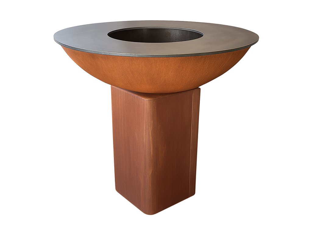 Ohnisko Curvo 94 má uzavretú, elegantnú základňu, ktorá pôsobí moderne a vkusne zapadne do každého exteriéru – od mestských terás až po rustikálne záhrady. Jeho široká oceľová platňa umožňuje grilovanie, opekanie aj pomalé varenie, čo z neho robí ideálneho spoločníka na prípravu mäsa, zeleniny, rýb aj morských plodov.