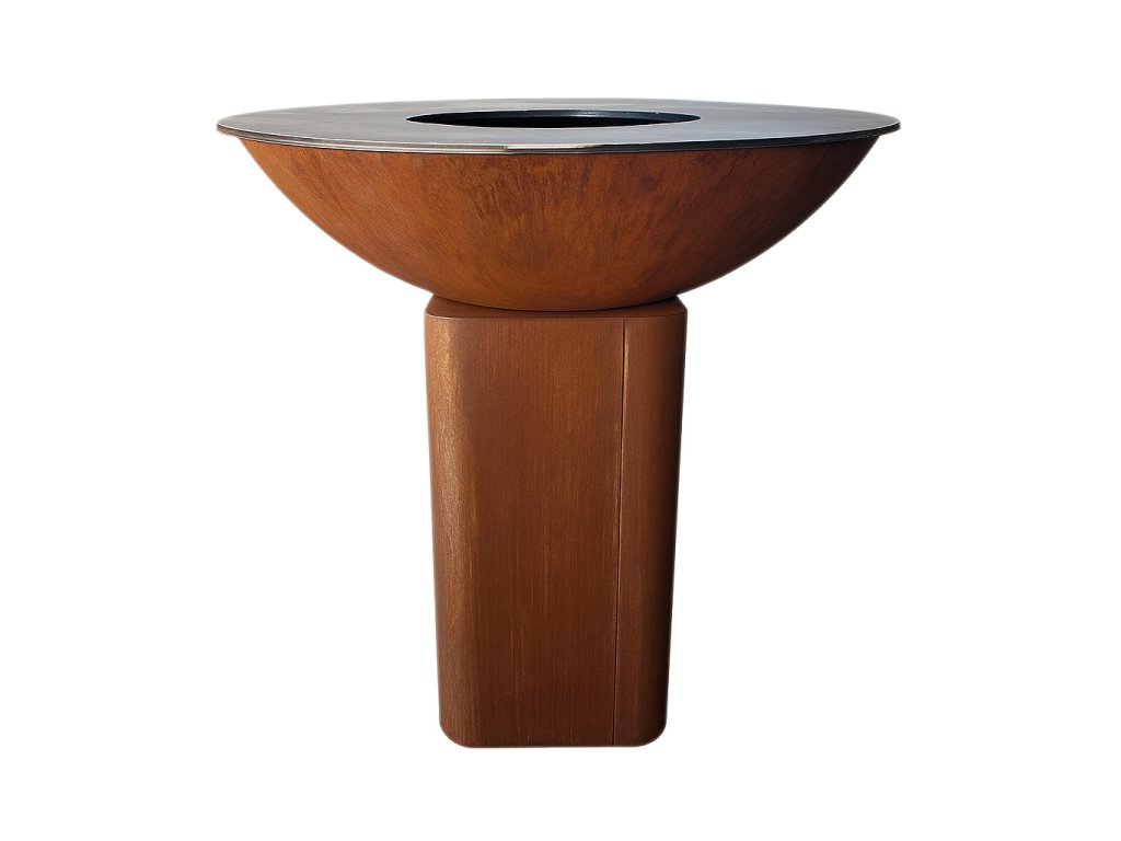 Telo grilu je vyrobené z vysoko kvalitnej cortenovej ocele, ktorá je známa svojou extrémnou odolnosťou voči poveternostným vplyvom. Produkt je dodávaný v surovom (nehrdzavom) stave – prirodzená hrdzavá patina, ktorá sa vytvorí počas približne 6 mesiacov vystavenia počasiu, dodá ohnisku unikátny vzhľad a zároveň ho ochráni pred ďalšou koróziou.