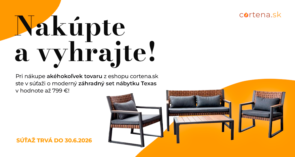 Chceli by ste túto sezónu relaxovať na terase v úplne novom štýle? Máme pre vás jedinečnú šancu! Na e-shope Cortena.sk spúšťame veľkú jarnú súťaž o luxusný Záhradný set nábytku TEXAS CS (sedačka + kreslá), ktorý premení vašu záhradu na miesto ako z katalógu.