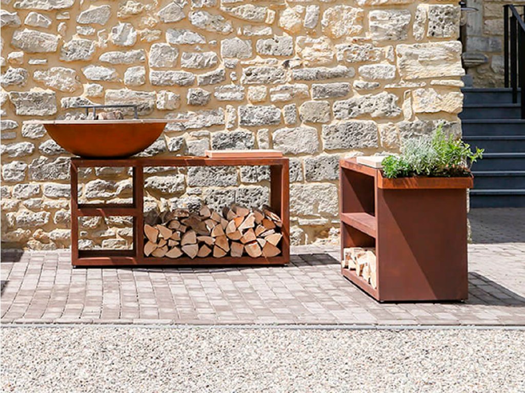 Vonkajšia kuchyňa s grilom a pracovnou doskou PIATTO TAVOLO medium corten