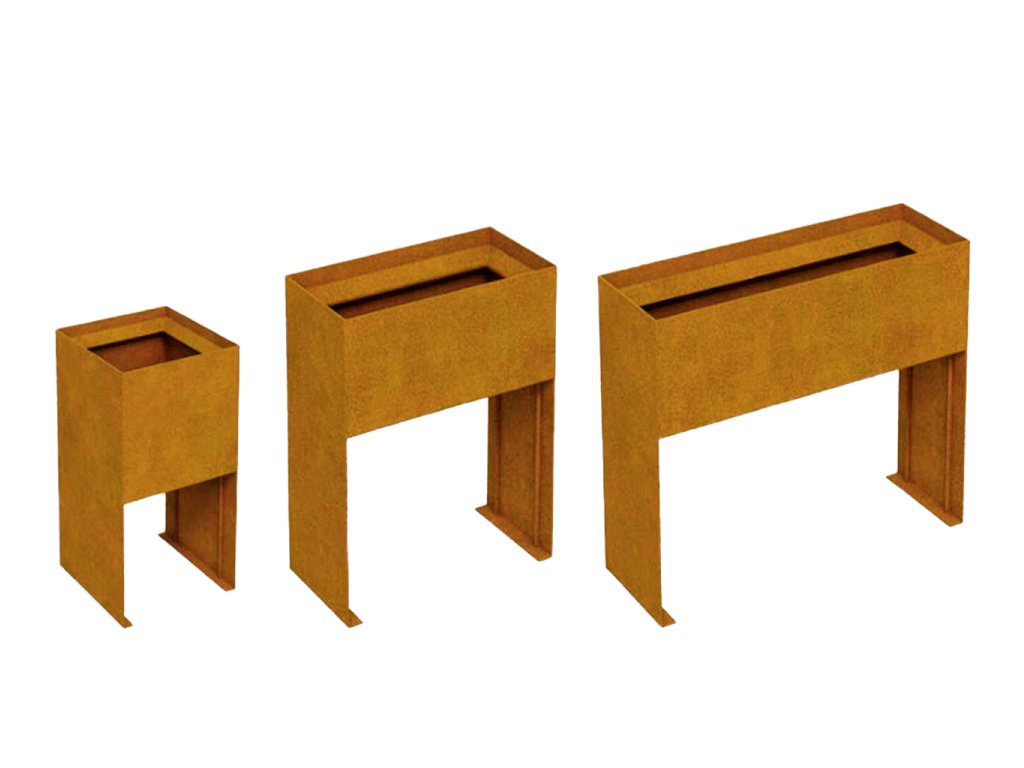 PLANTA je výrazný záhradný kvetináč z cortenovej ocele, ktorý vyniká výškou, šikmo zrezaným horným okrajom a dlhými bočnými podperami, ktoré mu dodávajú originálny architektonický charakter. Vyrába sa v štvorcovom aj obdĺžnikovom prevedení, čo umožňuje flexibilné využitie v rôznych typoch priestorov.
