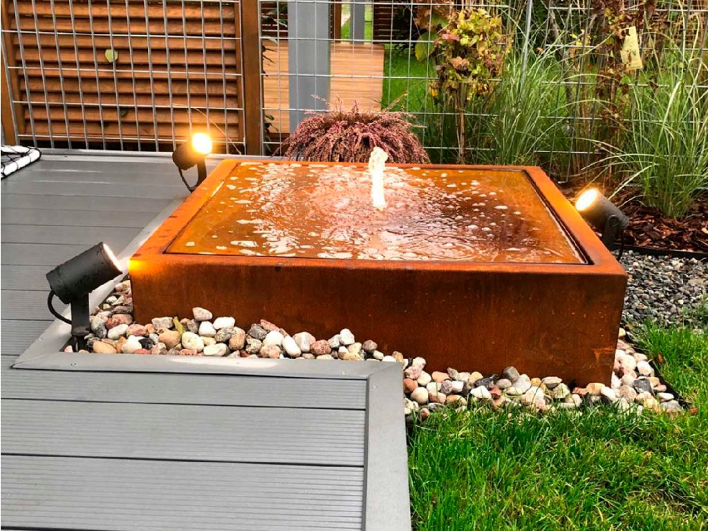 Záhradná hranatá fontána z cortenovej ocele s LED osvetlením FUENTE FW