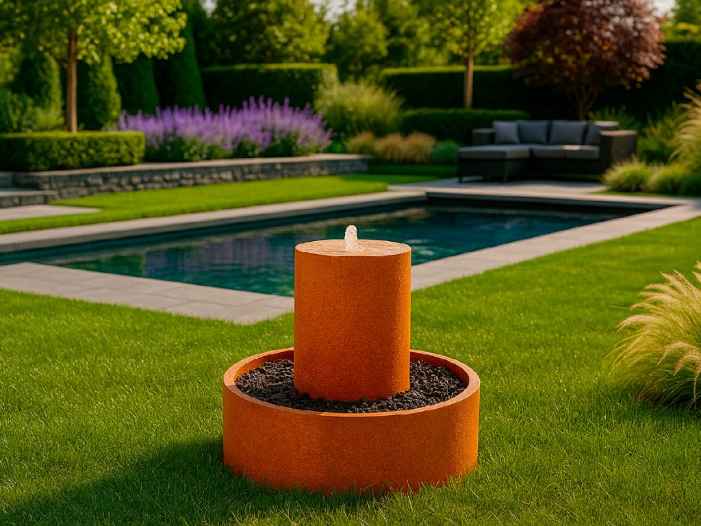 FUENTE FCZ je minimalistická záhradná fontána s uzavretým obehom v tvare oválu, určená na zapustenie do terénu. Je navrhnutá tak, aby pôsobila nenápadne, no zároveň elegantne – vhodná je do súkromných záhrad, reprezentačných vstupov, ako aj verejných priestorov. Vyrobená je z vysoko odolnej 2 mm hrubej cortenovej ocele, ktorá zabezpečuje dlhú životnosť a prirodzený vzhľad bez nutnosti údržby.