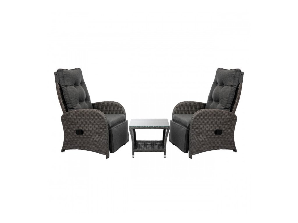 Set Songo predstavuje riešenie pre tých, ktorí hľadajú štýlové a mimoriadne pohodlné ležadlá pre dvojicu. Súčasťou balenia sú 2 veľké polohovateľné ležadlá a praktický stolík so sklom z tvrdeného skla. Vďaka spojeniu oceľovej konštrukcie a polyratanového opletu sú tieto ležadlá stabilné, pevné a vhodné na celoročné používanie v exteriéri.
