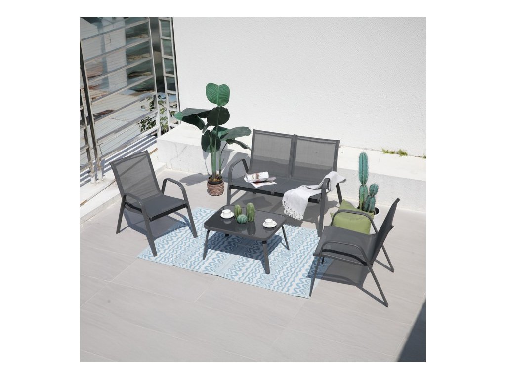Záhradné sedenie Rivet je vytvorené pre tých, ktorí chcú vytvoriť pohodlnú oddychovú zónu aj v obmedzenom priestore. Jeho kompaktné rozmery umožňujú umiestnenie na balkóny, menšie terasy či mestské lodžie, pričom si stále zachováva plnohodnotný komfort. Spojenie práškovo lakovanej ocele a modernej stolovej dosky z tvrdeného skla prináša harmonický vizuálny efekt a nadčasové prevedenie.