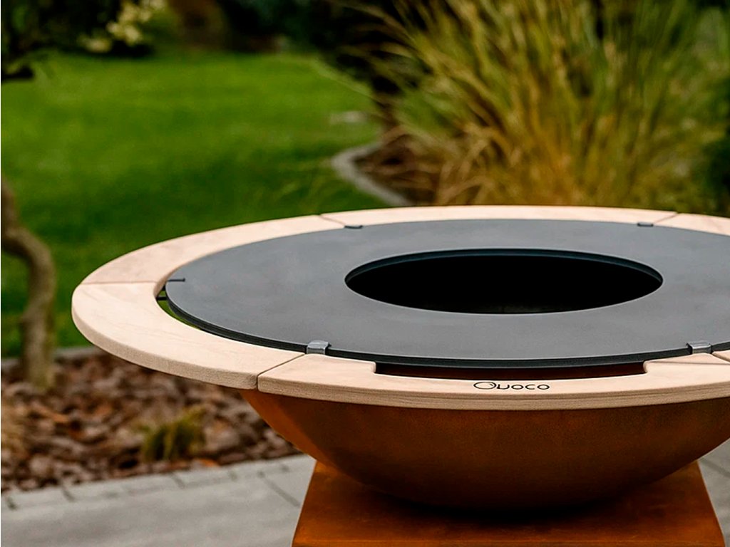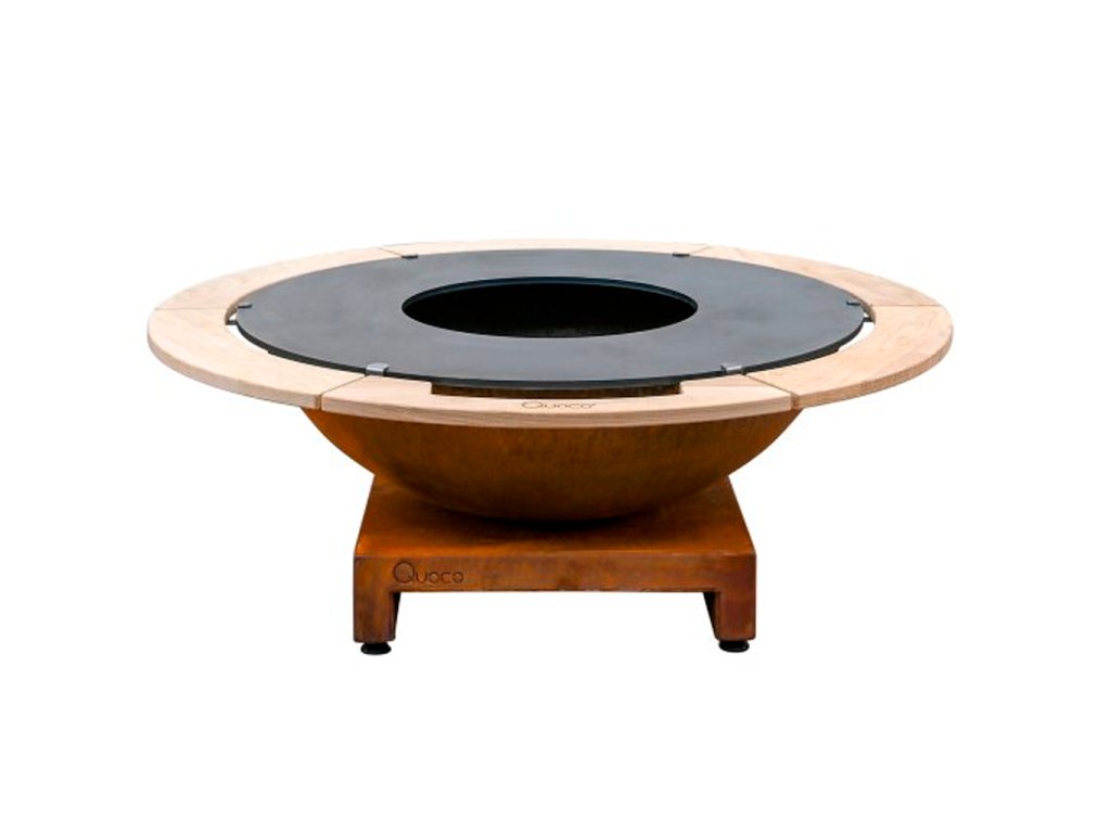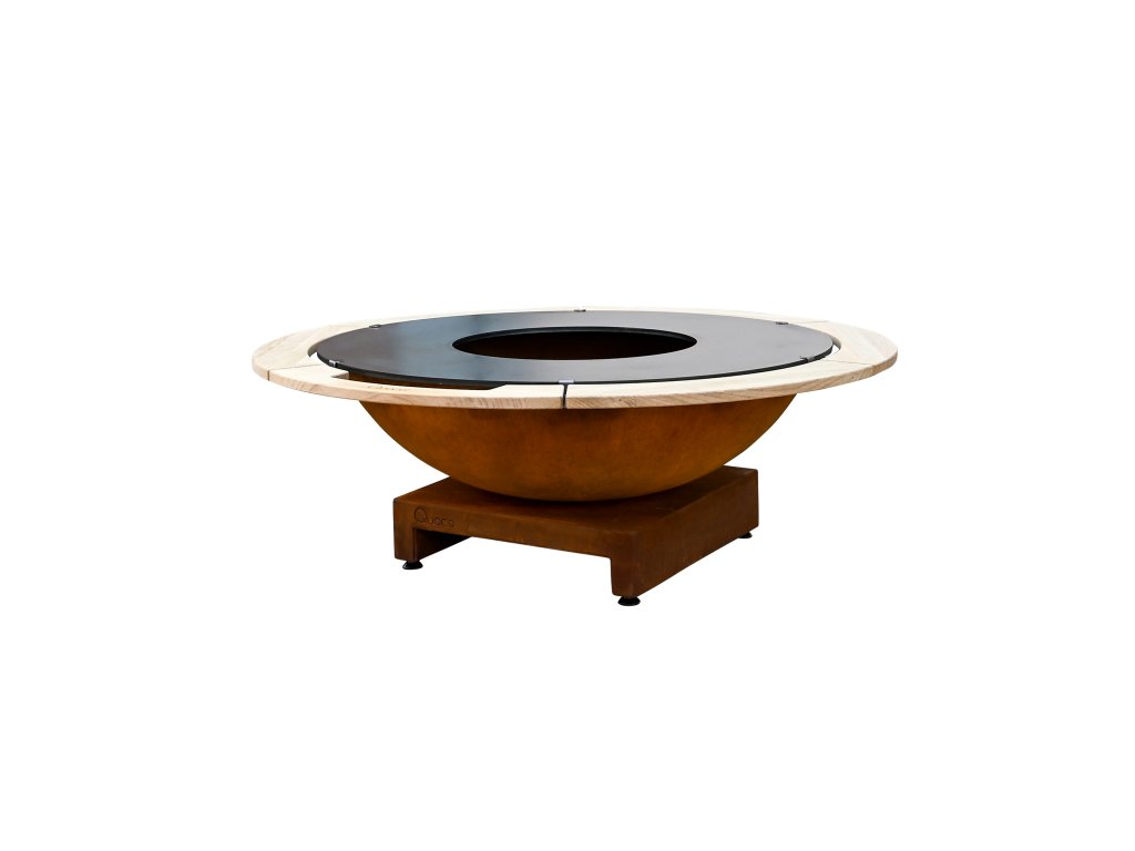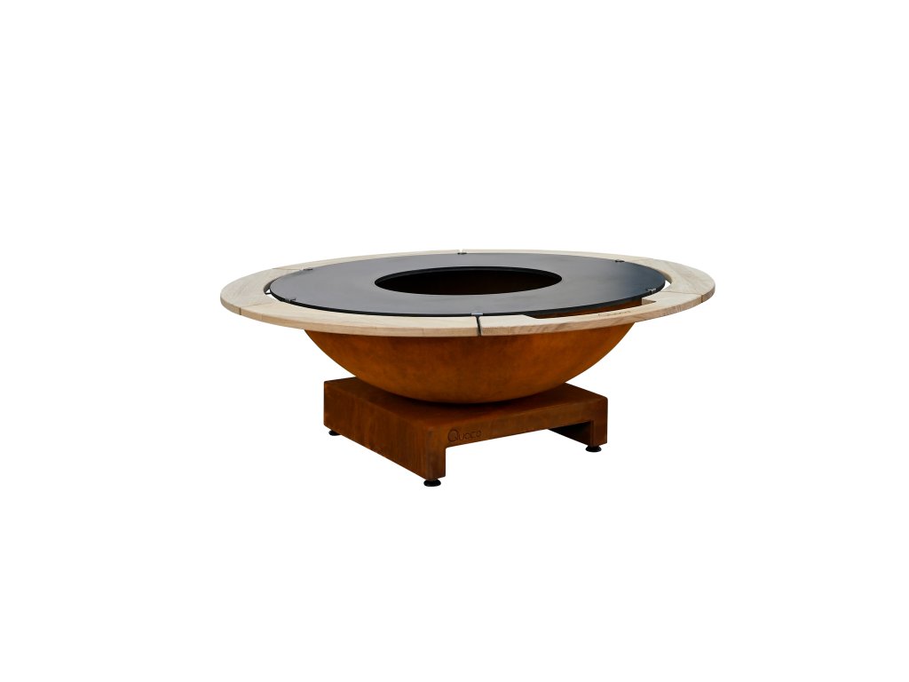 Záhradný gril PIATTO BASSO+ LARGE CORTEN s ochranným dreveným krúžkom