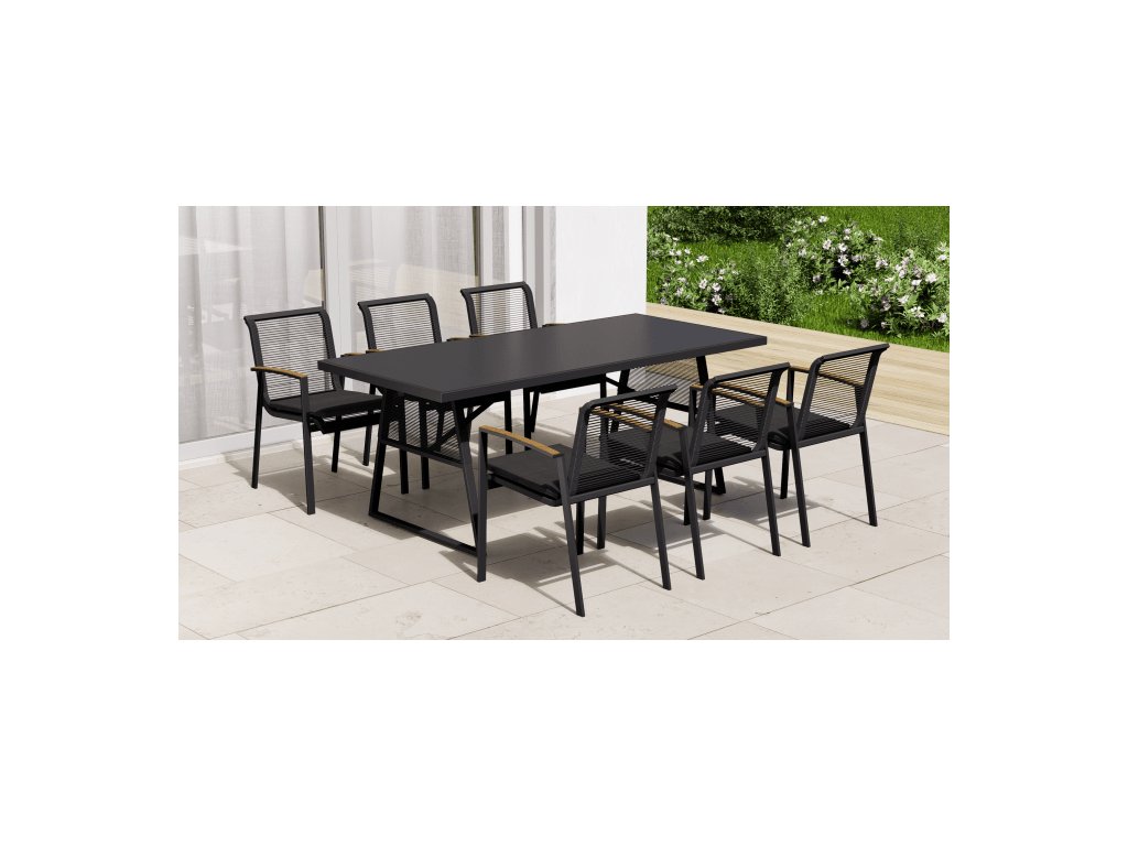 Záhradný jedálenský set Colon pre 6 osôb je riešením pre tých, ktorí hľadajú štýlový, trvácny a dizajnovo čistý nábytok do exteriéru. Kombinácia pevnej oceľovej konštrukcie a polyratanového výpletu vytvára mimoriadne stabilný a estetický komplet, ktorý si zachová svoj vzhľad aj po rokoch používania. Súčasťou setu je priestorný stôl so sklenenou doskou a 6 pohodlných kresiel s poduškami, ktoré zabezpečujú komfort pri spoločnom stolovaní.