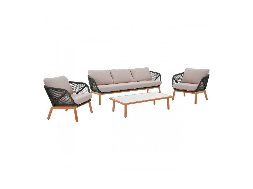 Sedacie časti sú vyhotovené zo štýlového šnúrového výpletu, ktorý pôsobí dizajnovo a súčasne zaručuje dobrú priedušnosť. Podušky z materiálu Olefin poskytujú vysoký komfort pri sedení a zároveň ponúkajú odolnosť voči vlhkosti, blednutiu aj znehodnoteniu tvaru. Vďaka tomu si zachovajú svoj vzhľad aj po dlhodobom používaní v exteriéri.
