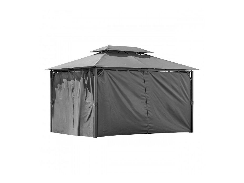 Strecha z polyesteru s ochrannou PA vrstvou (180 g) účinne chráni prehriatím interiéru a zároveň poskytuje ochranu pred miernym dažďom a vetrom. Bočné steny z polyesteru 160 g sú posuvné, vďaka čomu je možné pavilón úplne uzavrieť alebo naopak maximálne otvoriť podľa aktuálnych podmienok.