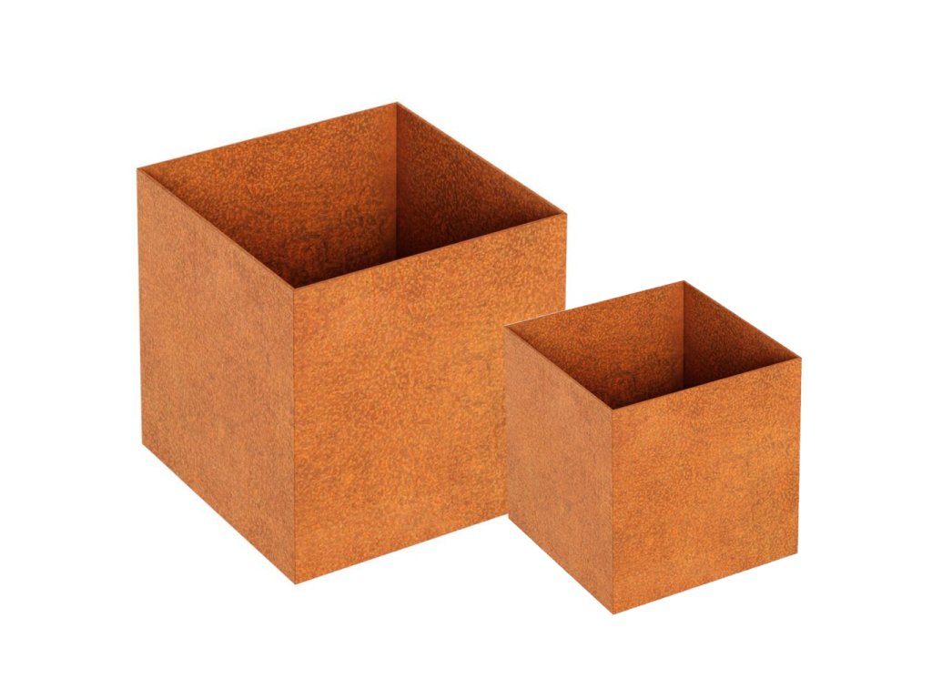 Cortenová oceľ je špeciálny druh ocele, ktorý pri vystavení vonkajším vplyvom prirodzene oxiduje a vytvára hrdzavú patinu. Táto patina nie je len estetická – funguje ako ochranná vrstva, ktorá zabraňuje ďalšiemu korodovaniu, čím výrazne predlžuje životnosť výrobku. Vizuálne dodáva povrchu teplý, prirodzený vzhľad, ktorý sa výborne kombinuje s rastlinami a prírodnými materiálmi.